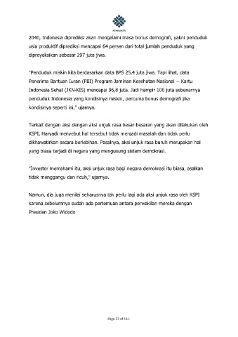 "Investor memahami itu, aksi unjuk rasa bagi negara demokrasi itu biasa, asalkan