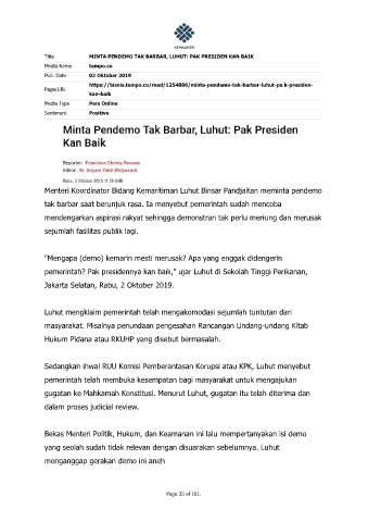 Title MINTA PENDEMO TAK BARBAR, LUHUT: PAK PRESIDEN KAN BAIK