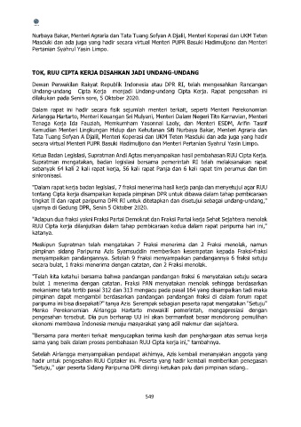 sama yang baik dalam proses pembahasan RUU Cipta kerja ini," tambahnya.