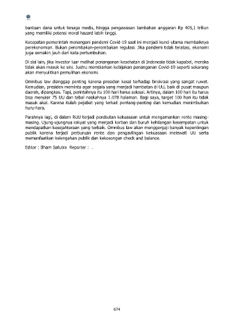 perekonomian. Bukan perombakan-perombakan regulasi. Jika pandemi tidak teratasi, ekonomi