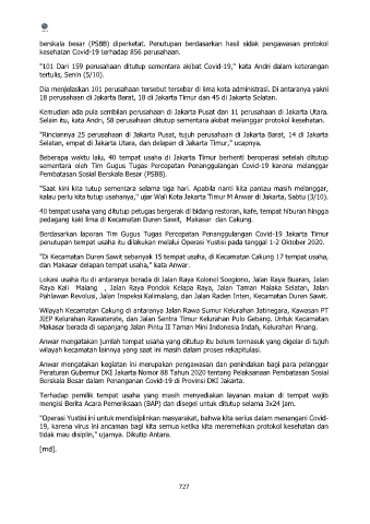 berskala besar (PSBB) diperketat. Penutupan berdasarkan hasil sidak pengawasan protokol