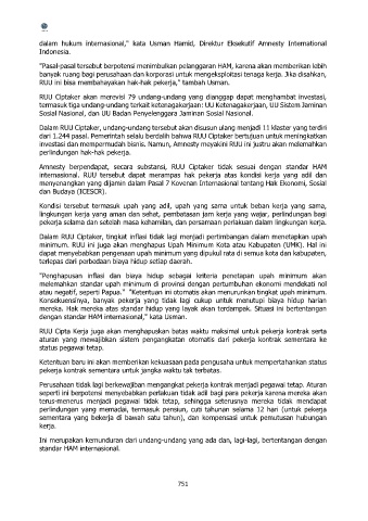 investasi dan mempermudah bisnis. Namun, Amnesty meyakini RUU ini justru akan melemahkan