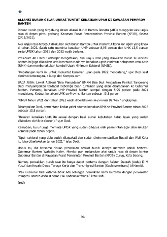 di tahun 2022. Salah satu meminta kenaikan UMP sebesar 8,95 persen dan UMK 13,5 persen