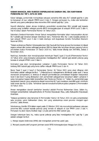 menambah daerah yang pekerjanya dapat menerima BLT gaji meskipun memiliki upah minimum