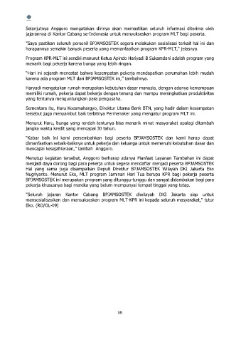 mensosialisasikan dan mensukseskan program MLT-KPR ini kepada seluruh masyarakat," tutur