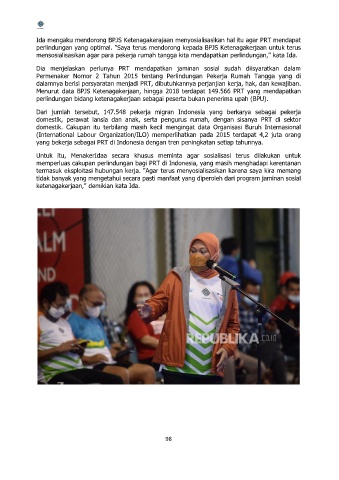 Ida mengaku mendorong BPJS Ketenagakerajaan menyosialisasikan hal itu agar PRT mendapat