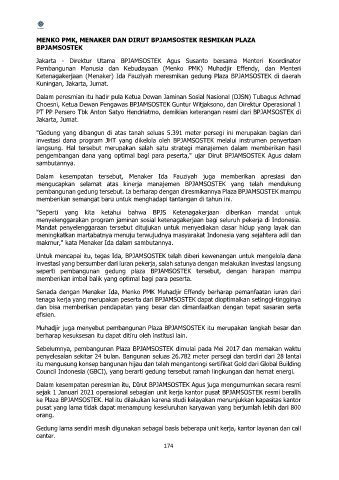 pembangunan gedung tersebut. Ia berharap dengan diresmikannya Plaza BPJAMSOSTEK mampu