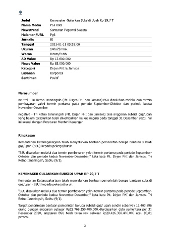 negative - Tri Retno Isnaningsih (Plt. Dirjen PHI dan Jamsos) Sisa anggaran subsidi gaji/upah