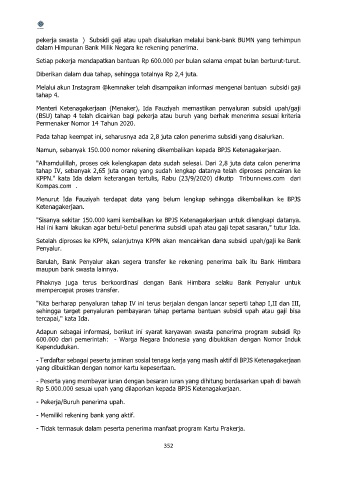pekerja swasta ) Subsidi gaji atau upah disalurkan melalui bank-bank BUMN yang terhimpun