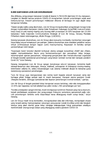 "Dalam jangka waktu yang diperlukan, Lion Air Group mengumumkan pengurangan tenaga kerja