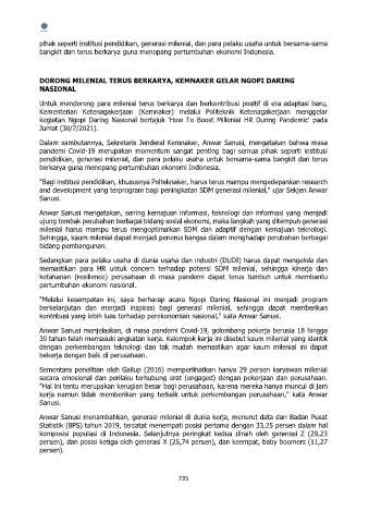 memastikan para HR untuk concern terhadap potensi SDM milenial, sehingga kinerja dan