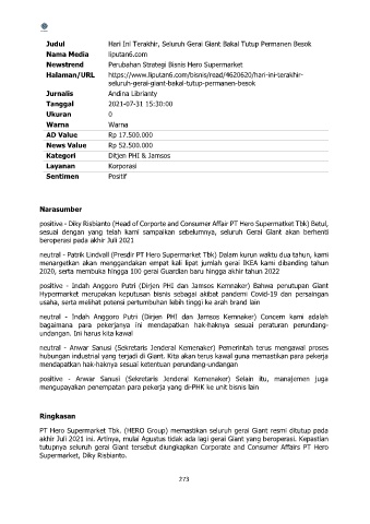 positive - Indah Anggoro Putri (Dirjen PHI dan Jamsos Kemnaker) Bahwa penutupan Giant