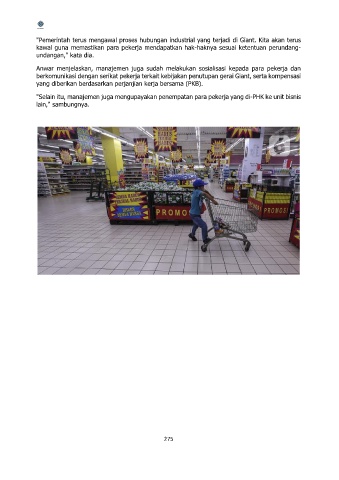 "Pemerintah terus mengawal proses hubungan industrial yang terjadi di Giant. Kita akan terus