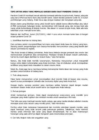 yang baru mMemulai karier baru atau beralih karier. Dalam kondisi pandemi Covid-19, ini butuh