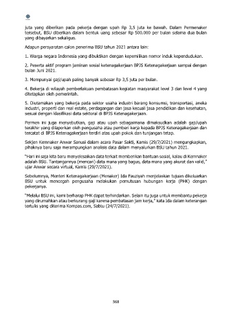 juta yang diberikan pada pekerja dengan upah Rp 3,5 juta ke bawah. Dalam Permenaker