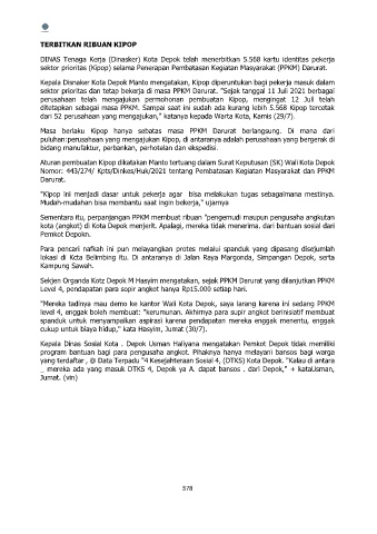 Kepala Disnaker Kota Depok Manto mengatakan, Kipop diperuntukan bagi pekerja masuk dalam