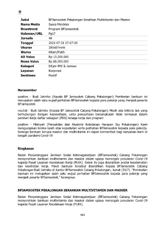 Judul BPJamsostek Pekalongan Serahkan Multivitamin dan Masker