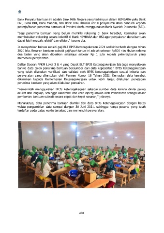 pekerja/buruh penerima bantuan di Provinsi Aceh, menggunakan Bank Syariah Indonesia (BSI).