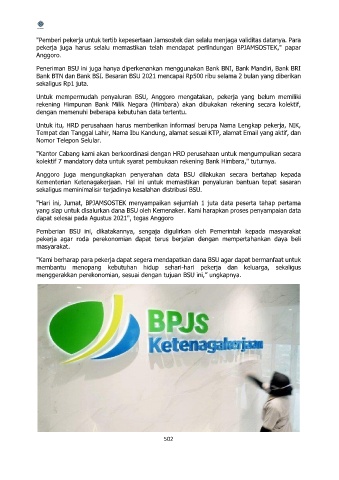 Untuk mempermudah penyaluran BSU, Anggoro mengatakan, pekerja yang belum memiliki