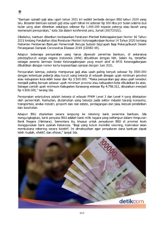 lalu. Besaran bantuan subsidi gaji atau upah tahun ini sebesar Rp 500 ribu per bulan selama dua