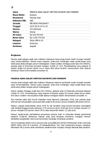 Judul PEKERJA ANAK DALAM IMPITAN EKONOMI DAN PANDEMI