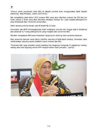 "Khusus untuk penyaluran dana BSU di wilayah provinsi Aceh menggunakan Bank Syariah