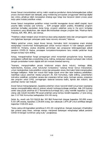 Anwar Sanusi mengungkapkan, kapasitas pelatihan vokasi nasional relatif cukup besar sepanjang