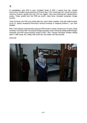 kesehatan para PMI yang menjalani isolasi di RIDC 2 BLK. Petugas kesehatan tersebut terbagi