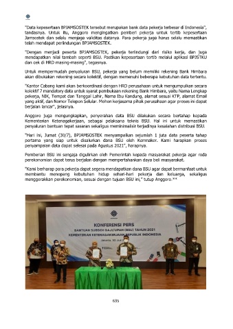 Pemberian BSU ini sengaja digulirkan oleh Pemerintah kepada masyarakat pekerja agar roda