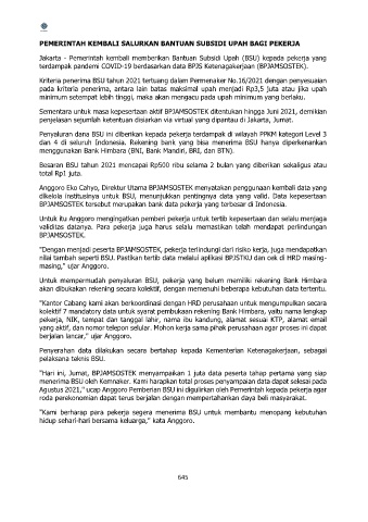 Agustus 2021," ucap Anggoro Pemberian BSU ini digulirkan oleh Pemerintah kepada pekerja agar