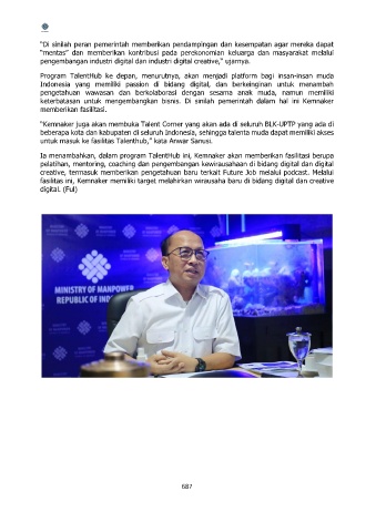 “Kemnaker juga akan membuka Talent Corner yang akan ada di seluruh BLK-UPTP yang ada di