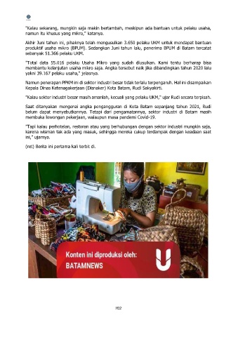 produktif usaha mikro (BPUM). Sedangkan Juni tahun lalu, penerima BPUM di Batam tercatat
