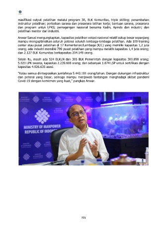 Anwar Sanusi mengungkapkan, kapasitas pelatihan vokasi nasional relatif cukup besar sepanjang