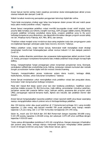 19. Kedua, penyiapan kompetensi-kompetensi baru melalui pelatihan kerja dengan konsep triple