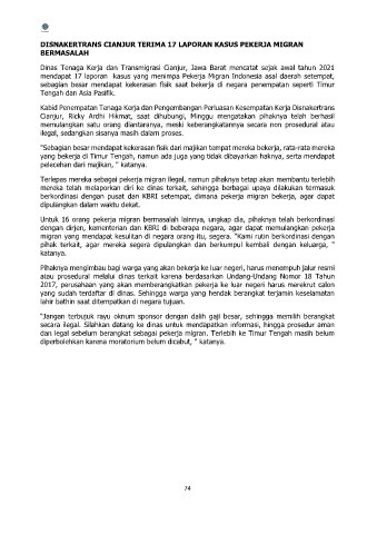 DISNAKERTRANS CIANJUR TERIMA 17 LAPORAN KASUS PEKERJA MIGRAN