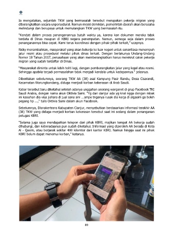 Al - Qasim, atau berjarak sekitar 400 kilomter dari kantor KBRI. Namun hingga saat ini pihak