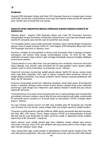ANGGOTA DPRD KABUPATEN BEKASI APRESIASI SUBSIDI PEKERJA PESERTA BP