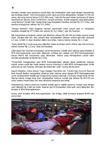 "Dengan demikian maka anggaran bantuan pemerintah untuk subsidi upah ini mengalami