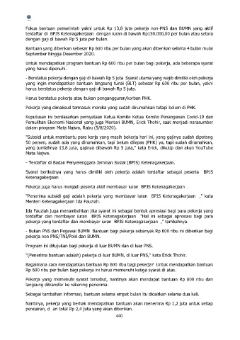 Fokus bantuan pemerintah yakni untuk Rp 13,8 juta pekerja non-PNS dan BUMN yang aktif