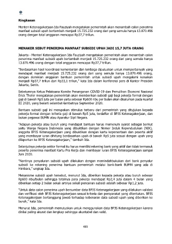 penerima manfaat subsidi upah bertambah menjadi 15.725.232 orang dari yang semula hanya