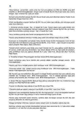 Fokus bantuan pemerintah yakni untuk Rp 13,8 juta pekerja non-PNS dan BUMN yang aktif