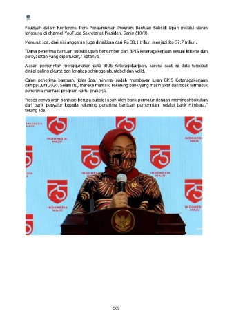 Fauziyah dalam Konferensi Pers Pengumuman Program Bantuan Subsidi Upah melalui siaran
