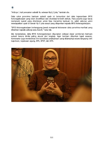 Ida menjelaskan, data BPJS Ketenagakerjaan digunakan sebagai dasar pemberian bantuan