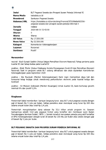 BLT PEGAWAI SWASTA DAN PROSPEK SURAM PEKERJA INFORMAL RI