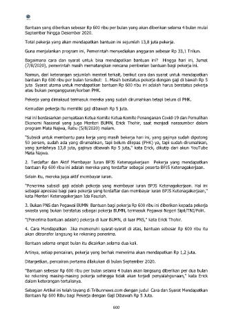 bantuan Rp 600 ribu ini adalah mereka yang terdaftar sebagai peserta BPJS Ketenagakerjaan.