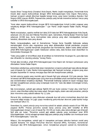Manto menjelaskan, apabila melihat dari data 2019 data dari BPJS Ketenagakerjaan Kota Depok,