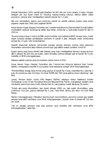 Dimulai September 2020, subsidi gaji diberikan Rp 600 ribu per bulan selama 4 bulan. Dengan