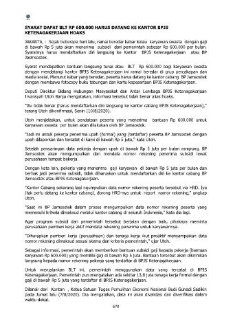 media sosial. Menurut kabar yang beredar, peserta harus datang ke kantor cabang BP Jamsostek