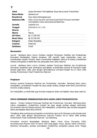 Judul Upaya Kemnaker Meningkatkan Daya Saing Lewat Produktivitas