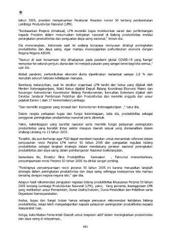 Adapun hasil rekomendasi penguatan regulasi bidang produktivitas khususnya Perpres 50 tahun